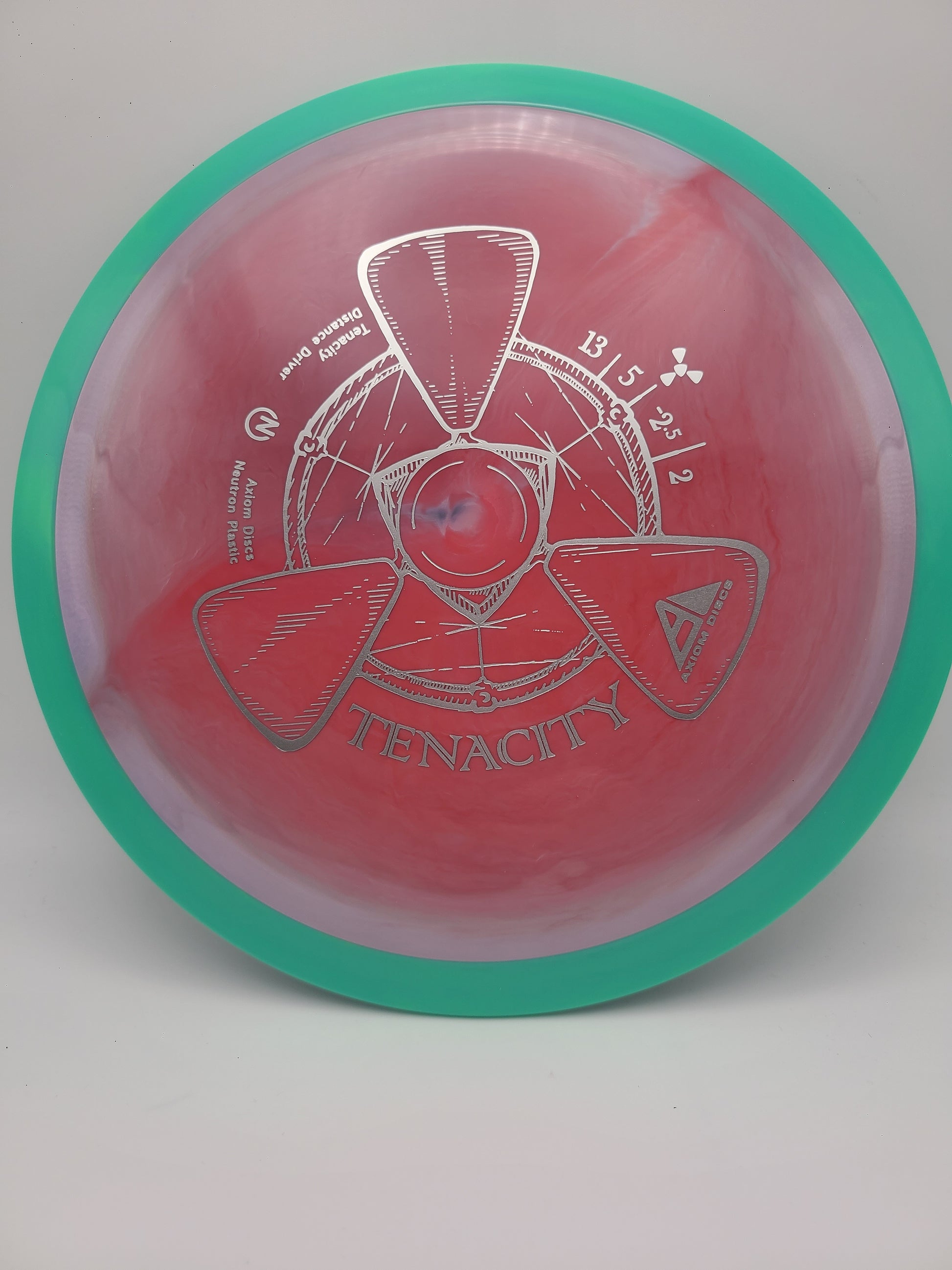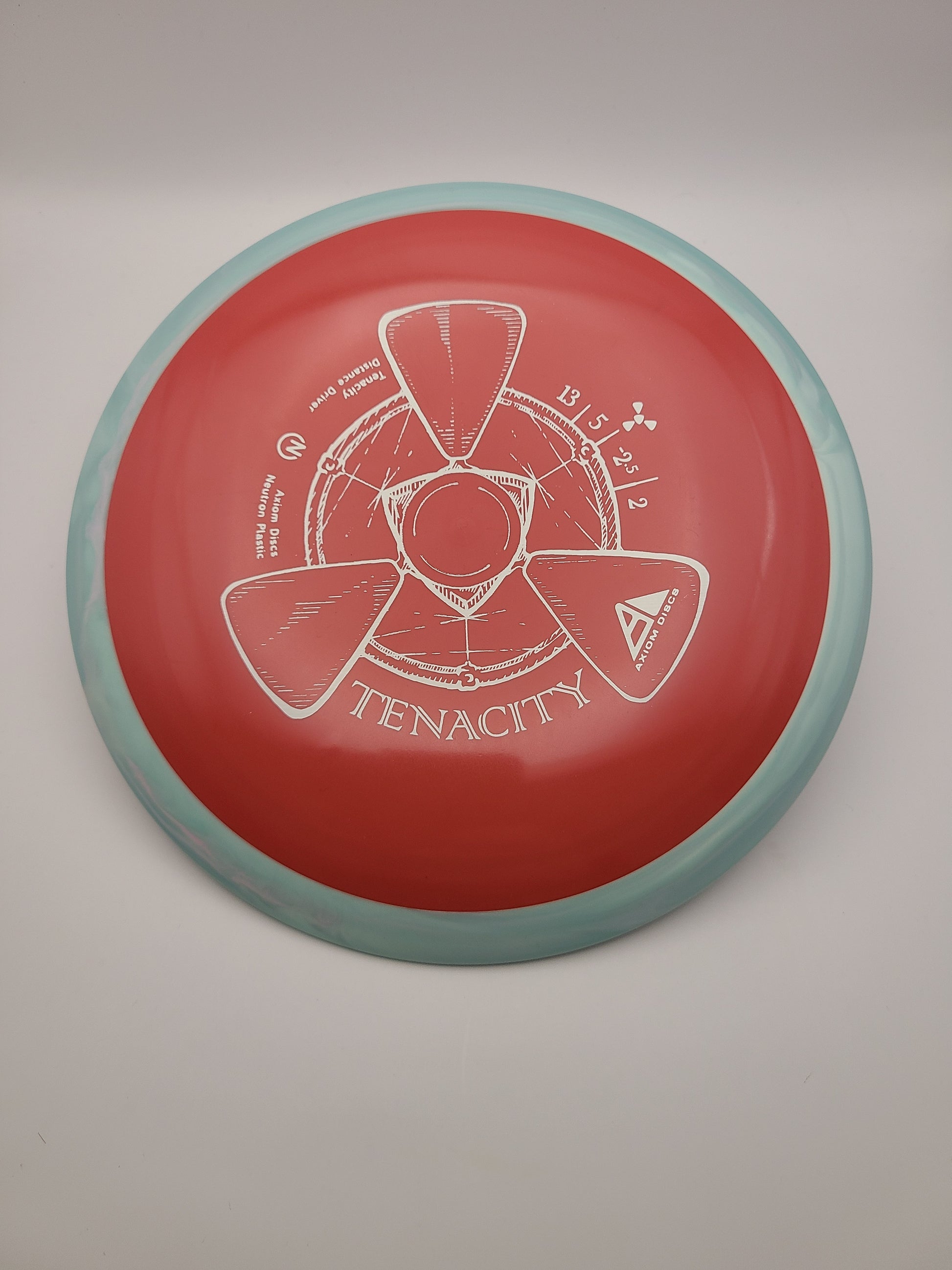 Tenacity is Axiom’s understable bomber from the new high-speed 23mm distance class. With proper form the Tenacity easily qualifies as “sneaky long”. Tenacity is best compared to a worn MVP Catalyst, and features the familiar evenly domed top to promote distance-covering glide.